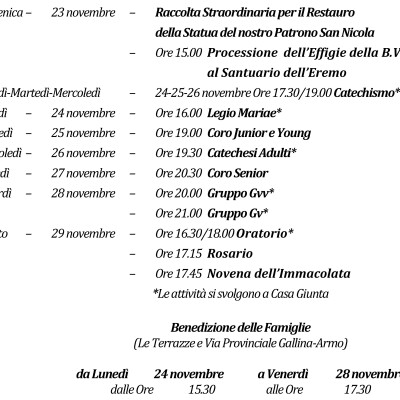 Avvisi della Settimana 23 – 30 Novembre
